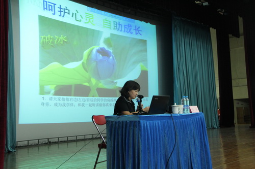 袁辛教授以“ 呵护心灵自助成长”为主题, 从人格心理学方面出发,为同学们详细介绍了生活中常见的心理学问题;并现场与同学们互动,开设问答环节,向同学们讲解如何调整好心态,有意义地度过大学生活。讲座持续了两个多小时,在全场同学手拉手,相互勉励中落下帷幕。