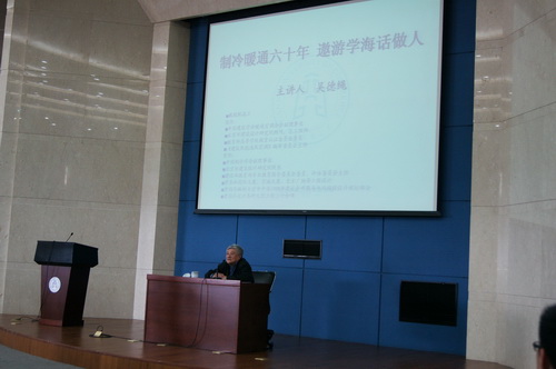 吴德绳教授以“制冷暖通六十年,遨游学海话做人”为主题,生动的诠释了他终生坚持的“活的明白”的哲学,并以其独特的人格品质和专业素养,通过生动的生活点滴向大家讲解了大学生能学应学、培养情商、在学习中学会感恩等内容,并对在座学生表达了自己“择我所爱 爱我所择”、“静坐当思己过,闲谈勿论人非”的希冀,为制冷专业的学生带来思考自身使命、促进专业学习的良好机会。