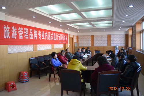 12 月 28 日 ,商学院举办旅游管理品牌专业内涵建设专题研讨会,认真总结天津市品牌专业——旅游管理专业建设进展,交流研讨市级教改课题“天津市普通高校旅游管理品牌专业内涵建设的研究与实践”课题成果。旅游管理系和酒店管理系全体教师与会。会议由旅游系主任胡宇橙副教授主持,金丽教授、酒店系主任李志刚副教授、时临云副教授、沈长智老师、粱怡老师、李烨老师作重点发言,旅游管理品牌专业及市级教改课题主持人王庆生教授做简要总结。