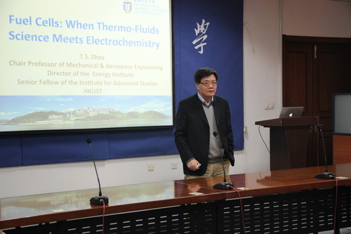 12月27日下午,应机械工程学院动力及工程热物理一级学科的邀请,香港科技大学赵天寿教授在图书馆弘毅厅为师生们作了一场有关新能源的专题报告,详细介绍了燃料电池研发中有关电化学与工程热物理学交叉学科技术的研究进展,使大家耳目一新。