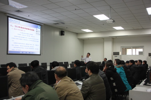2月21日,信息工程学院在现代信息交流中心四楼机房召开全院教职工大会,传达学校近期会议精神与2013年考核情况,布置新学期工作。大会由院党委书记刘振航主持,院长潘旭华、副院长陈雷、党委副书记王艳军以及全院教职工出席。