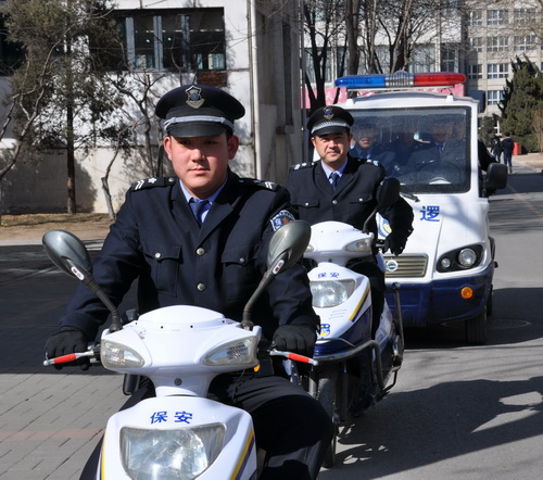 保卫处在增配应急安保器械的基础上,加强了校安保队伍的日常管理和技防监管工作,做到适时监控,及时处置。校安保队伍加强了安保工作措施,强化门卫、值班及校内安全巡逻等制度,严禁闲散人员随意进出校园,增加巡逻频次和人数,确保安保工作不留死角。