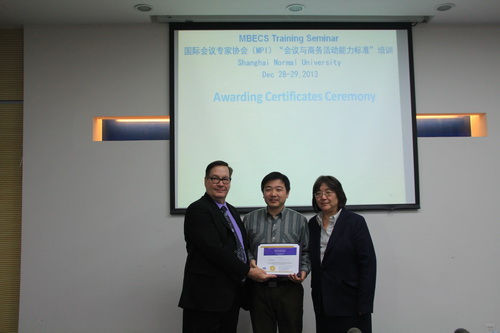 2013 年 12 月 28-30 日,公共管理学院会展专业负责人杨琪、系支部书记赵伯艳、教学秘书何延岩、任课教师李勇军和严敏一行五人赴上海进行了专业学习交流活动,先后参加了上海师范大学和美国东卡罗琳娜大学联合举办的国际会议专家协会( MPI )“会议与商务活动能力标准”培训,拜访了会展专业实践教学基地——上海都赛商务咨询公司,参观了上海师范大学和上海应用技术学院会展专业实验室。
