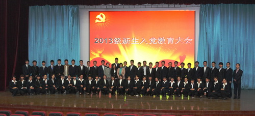 近日,经济学院在科学会堂举办以“践行群众路线,实现大学梦想”为主题,以“端正入党动机,提高思想认识,培养良好学风,早日成长成才”为重点的2013 级新生入党教育活动。经济学院党委副书记张玉娟,经济系辅导员王欣欣,财政系辅导员刘宁,金融系辅导员徐建勋,国贸系辅导员杜志惠以及全体学生党员和 2013 级新生参加了活动。