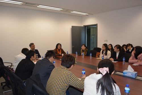 11 月 25 日上午,租赁学院 2013 级融资租赁研究生在班主任李宁老师的带领下,去滨海新区天津融资租赁行业协会进行认知实习。天津市租赁行业协会会长杨海田、协会秘书长徐景怡与研究生进行座谈。