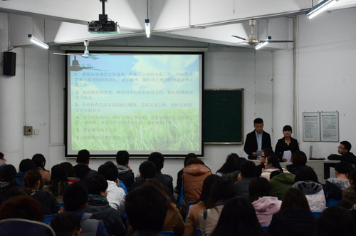 在如何成为一名优秀学生干部讲座上,院团委书记韩志文从学习、品德、能力等方面进行了分析。让同学们了解了学生干部首先是学生,学习是学生的本分,学生干部在学习上落后就丧失了作为学生干部的根本;其次是干部,干部是一个管理者,是一个组织或者团队中的领头人,带领大家去完成目标的人。让同学们对于大学期间如何成长为合格的学生干部有了清晰的了解和认识。