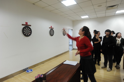 飞镖比赛作为一项娱乐性强又易于组织的体育项目,自开展以来深受广大教职工欢迎,作为图书馆落实群众路线教育实践活动之一,馆工会积极采纳群众的建议,在每月的工会活动日组织丰富多样的集体文娱活动,让全馆职工在工作之余得到了放松,同时增强了教职工的凝聚力,提高了工作热情。