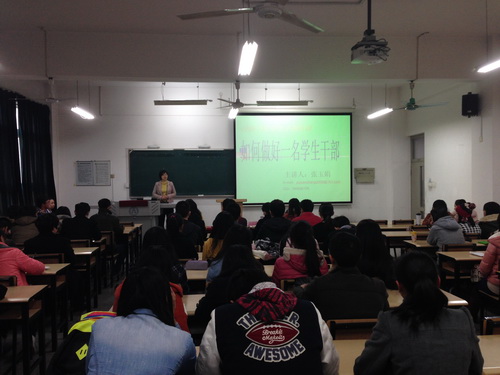 为提高学生干部的思想素质、增强学生干部的工作能力、促进学生干部的成长,张玉娟副书记针对经济学院团委、学生会的学生干部及十佳优秀干事,讲授 “如何做好一名学生干部”团校第一堂课。她首先阐释了学生干部的定义;其次,提出了学生干部面临的课题以及学生干部应达到的四个境界;然后,强调了学生干部应该不断提高认识水平,准确做好自身定位,有效推动学院、学校的学风建设和校园文化建设。最后,会议在张玉娟副书记分享的小故事“走一步,再走一步”中落下了帷幕。