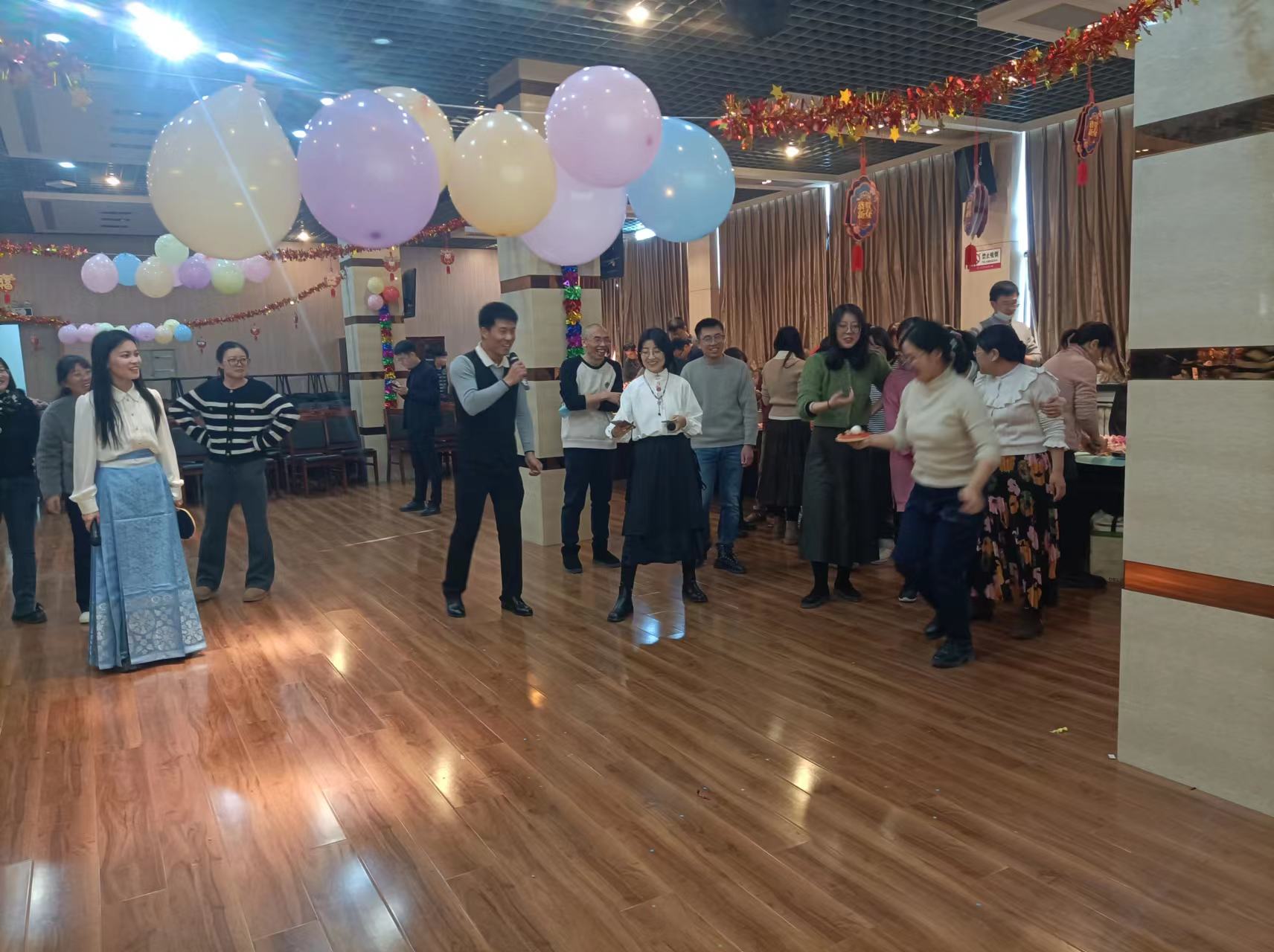 此外,联欢会还组织大家一起切蛋糕、包饺子、煮汤圆。大家围坐一起共品各馅水饺和“柿柿如意”汤圆,展现了理学院教职工亲如一家、祥和团结的良好氛围,也表达着大家对理学院美好未来的向往和祝福。在“手舞足蹈”“趣味乒乓球”“你划我猜”“看眼色”等互动游戏及唱歌比赛环节,大家竞相参与,欢歌笑语连成一片,气氛十分活跃热闹。
