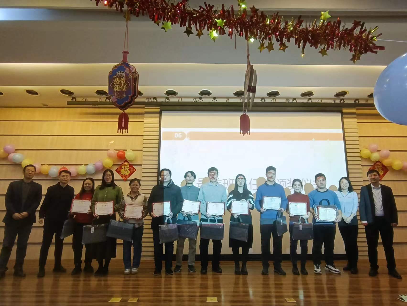 联欢会上,理学院党委书记梁强代表领导班子对全体教职工在2023年的辛勤工作表示感谢,对这一年的工作成绩表示肯定,鼓励大家在新的一年里继续团结奋进、再创佳绩!其他领导班子成员唐文广、周严、王素芳,以及各系室负责人分别对2023年工作进行了全面总结。联欢会上,揭晓了理学院“最美班主任”网络评选活动结果,并为十名获奖老师颁发了荣誉证书,鼓励大家继续用心用力用情做好育人工作。