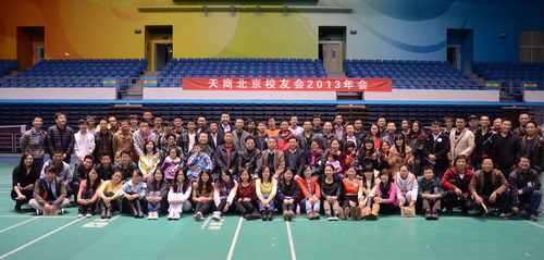 11 月 3 日 下午,天商北京校友会 2013 年年会在北京工业大学奥林匹克体育馆举行,这是天商北京校友会自 2012 年 6 月 30 日成立以来的首届年会。校友总会常务副会长、校友工作办公室主任张堃,总会副会长、党委宣传部部长张克明,总会副会长兼北京校友会会长刘征,总会理事兼北京校友会副会长张恕峰、康瑞鑫,总会秘书长许洪涛,总会理事兼北京校友会秘书长刘利勇等出席了年会,北京校友会理事会成员及各届在京校友 130 余人参加了会议。