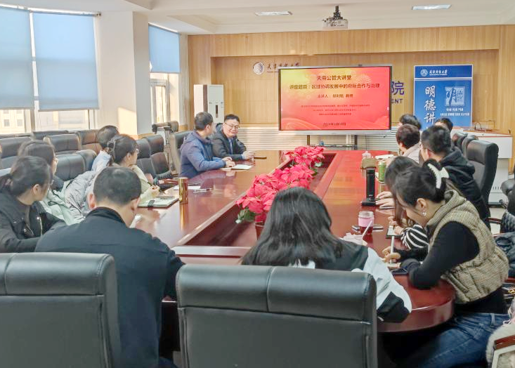1月18日,南开大学周恩来政府管理学院锁利铭教授应邀为公共管理学院教师作题为《区域协调发展中的府际合作与治理》的学术讲座。公共管理学院院长薛立强,副院长陶志梅、王雪丽、刘双良和部分专任教师在学院512室参加。讲座由学院院长薛立强主持。