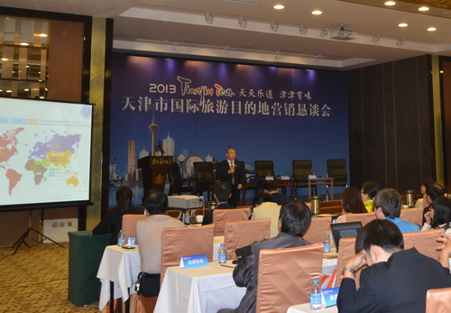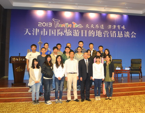 9 月27 日上午,作为“首届中国(天津)国际创意产业博览会”的重要组成部分,由天津市旅游局与天津日报社联合主办的“天津市国际旅游目的地营销恳谈会”在津利华大酒店举行。天津日报社总编辑王宏、天津市旅游局局长佘清文为大会致辞,商学院王庆生教授以“天津市旅游目的地建设与营销创新:背景、机制与路径”为题作大会主旨演讲。会议安排了两组共10 位旅游专家和业界老总就国际旅游目的地营销进行了精彩对话。商学院酒店管理系主任李志刚副教授、旅游管理系吴静博士和旅游管理专业研究生、本科生约30 人受邀参加会议。会后与会师生一致认为有“大开眼界、受益匪浅”之感,与会同学希望今后有更多机会出席类似的行业(专业)活动,以便更多、更近地贴近日新月异的旅游产业前沿。