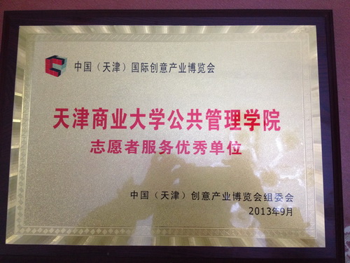 9 月 26 日 至 9 月 29 日,首届中国(天津)国际创意产业博览会在天津国际展览中心举行。beat365官网公共管理学院96 名学生作为展会志愿者参与了展会的各项服务工作。在展会上,同学们用自己良好的服务态度和出色地表现,向与会嘉宾展示了良好的精神风貌,受到了各界嘉宾的一致褒奖。总结会上,创博会组委会向beat365官网公共管理学院颁发了“志愿者服务优秀单位”牌匾,向闫鸿博等“优秀志愿者”代表颁发了证书。公共管理学院副院长李增田、行政管理系支部书记张志泽、行政管理系系主任王雪丽出席了颁奖活动。