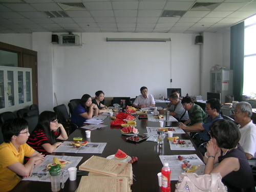 交流会上,王永祥副院长首先总结了近一年来学院为提升教学质量、优化教学环境和宣传学院形象所做出的不懈努力。学院为教学和科研购置了大批新版图书;召开了以系别和年级为单位的师生座谈会,听取了学生的意见,改进了教学方法;着手新版学院网页和墙报的更新工作,切实践行了以内涵建设为根本,以服务学生和教师为宗旨的办学方针。随后,孟庆升教授结合自己多年的教学心得,从个人与集体、专业与职业和教师与学生三方面叙述了自己的见解。在孟教授看来,个人在集体中生活要把握好对内和对外两种关系的区别。对内要有家的概念和认识,与同事要如兄弟姐妹般包容相处;对外要有个人即集体的觉悟,用自己的言行维护集体这个大家庭的形象。孟教授将集体比作家庭看法赢得了在座教师的一致认可和共鸣。最后,在座教师就大学扩招和就业两种因素对外语教学的影响谈及了各自的看法,对如何提升教学质量给出了自己的见解,并探讨了在本科生中实施“学业导师”制和按成绩分班办法的可行性。