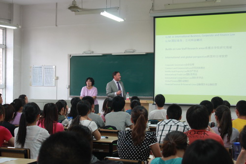 在校期间, Tony.Harvy 博士和 Alison.Liu 女士分别举行了四场学术报告,法学院教师和 2010 、 2011 级学生 800 余人聆听了报告。法学院学生对“ 3+1+1 ” 本硕连读 合作办学模式以及英方教师新颖的授课方式反响强烈,报告会结束后两位英方教师与同学们进行了亲切交谈,并逐一回答学生提问。