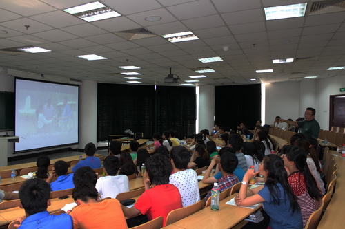 讲座结束后,同学们与王总进行了交流、探讨,表现出他们积极的学习态度和对未来发展的渴望,王总回答了同学们提出的相关问题。王总带来的创新营销理念,拓展了学生的思路,激励着在场的每位同学为实现梦想而努力。