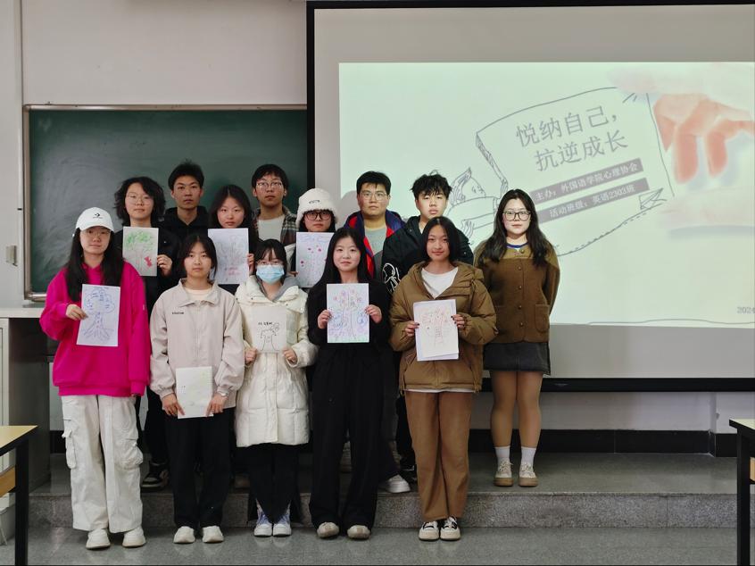 日前,外国语学院先后在心理协会和英语2303班开展大学生“悦纳自己,抗逆成长”大学生抗逆力训练活动。外国语学院心理协会及英语2303班全体成员参与此次训练活动。