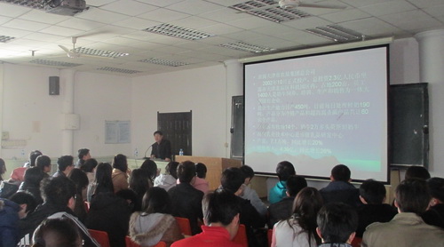 武文起总工程师从我国目前牛乳食品生产的状况谈起,针对乳制品企业的生产设备、关键技术、检测仪器和乳制品企业的发展前景,论述了在全球经济衰退的大背景下,中国经济的快速发展成为推动世界经济复苏的动力。中国企业的民族品牌正在崛起,并承担着越来越重要的社会责任。他坚定地说,民族企业要振兴发展,不仅需要先进的技术设备,更需要先进的管理理念、质量体系和安全标准来规范企业生产活动。同学们不仅要学习掌握专业知识,更要加强道德修养和社会责任意识。大学生要主动适应企业发展的需要,完善自身的素质和知识结构,合理规划职业道路,为职业发展做好充分贮备,完成从学校到职场的转变。