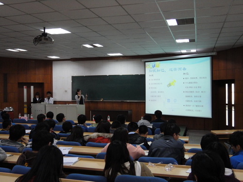 讲座上,天津明理企业管理咨询公司、北京家和业咨询有限公司董事、副总经理刘波以《职场快速进步 6 方法》为题,从请求帮助需商量、准备工作学经验、接收工作问要求、请示工作讲方案、汇报工作说结果、实施工作求效果六个方面对即将进入职场的同学提出了建议;天津雀巢有限公司总经理秘书刘宇晶则以在 500 强企业丰富的从业经验,向同学们传授《 500 强企业面试经验分享》,帮助同学们迈出应聘 500 强企业的第一步;天津健新安康日用品咨询服务公司经理杨佩丽则以《一个温州人的创业经验》为题,讲述了自己从一个公司白领到创业者的酸甜苦辣,以自身作为温州人创业的原因、经验、收获等方面为有志于创业的同学打开了一扇窗,使同学们受益匪浅。