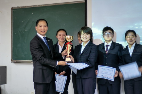 万丽天津宾馆销售总监易先生为获得一等奖的小组颁奖