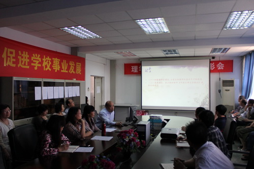 5 月15 日下午,理学院召开2013 年度工作推动会。会议由院长罗蕴玲主持,党总支书记杨卫疆、副院长梁新义、安建业,党总支副书记梁泽军及理学院全体教职工参加。