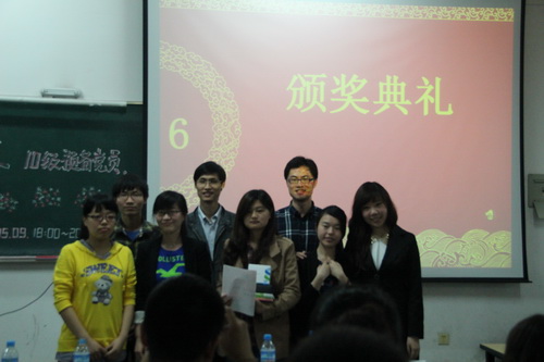 经过精彩的角逐,最终6 名选手脱颖而出,一等奖获得者是来自电子商务 10-01 班的沈婷婷同学,二等奖为鞠达松和邹百惠,三等奖为吴刚、石雯靖、王芳,三位嘉宾分别为他们颁发了奖状和奖品并合影留念。本次比赛激发了同学们对时政和演讲的热情,并将这种热情转化为最祖国的热爱,对伟大中国梦的追求。