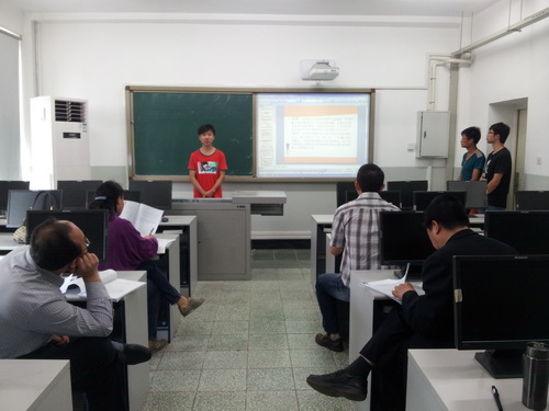 随后,将初审会分为两个阶段进行。第一阶段是“答辩”与“点评”阶段:将 21 个项目随机分成 2 组,每个项目的项目负责人与其它成员一起精心准备,通过语言流利,条理清晰地在 10 分钟内利用 PPT 对所申报的项目进行介绍,评委通过“提问”与“点评”进一步了解项目的具体情况,并从项目选题、立论依据、研究方案的可行性、项目特点与创新性、人员分工与经费预算、申报书的规范性等 6 个方面现场打分,选出优秀的项目推荐申报学校的 SRT 项目。第二阶段是“反馈”与“指导”阶段:答辩结束后,召集各项目负责人,由各组的评委老师对项目申报中存在的共性及个性问题进行了详细的讲解、反馈与指导,为各项目指明了改进的方向,并提出了具体的修改意见。