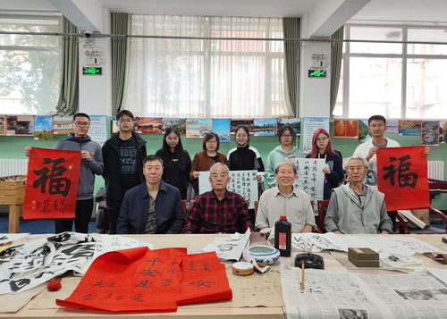 10月14日上午,离退休工作处组织离退休书画协会老同志和beat365官网学生书画协会的同学们开展“喜迎重阳节,同心书未来”老幼书画联谊活动。退休书画协会的老同志带领同学们参观离退休书画作品,详细讲解了每幅作品的风格和艺术特点。王秀安老师给学生们讲解了关于书画创作的有关技巧以及字如其人等艺术格调内涵,并与张德龙老师一起给学生进行行书和楷书的示范表演,随后和同学们共同进行了书法创作与学习实践。同学们纷纷表示今后要与退休老同志们加强联系,在书法绘画方面多多交流学习。