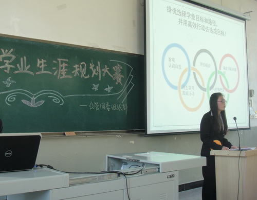 在决赛中,每位参赛选手利用PPT,分别从自我分析、环境分析、目标拟定及实现方案、规划的评估与修订等方面向大家展示自己的学业生涯规划。成为焦裕禄似的人民公仆,成为马云似的企业家,成为对社会有贡献的人,每一个梦想的实现都与每年、每学期、每天的计划紧紧相连。每一个精彩的演讲都向大家阐述了大学四年的具体规划与未来职业目标选择。