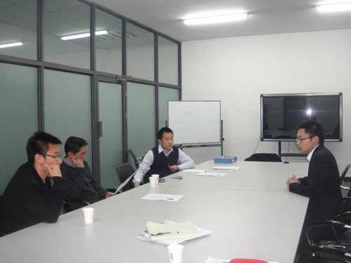 11 月 14 日,金融衍生品研究院举行 2012 级研究生项目班“非我莫属”职场面试体验。金融衍生品研究院特邀请经济学院易铁林老师作为主持嘉宾,经济研究所陈昭翔老师, 2011 级研究生项目班班长相方作为面试嘉宾。