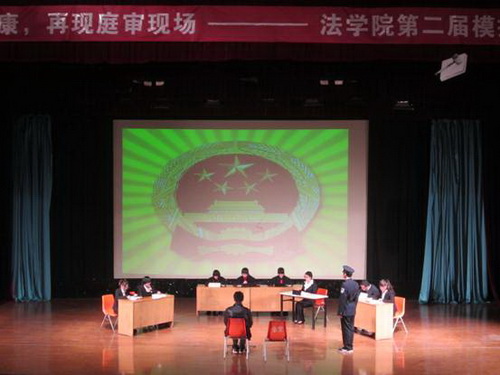 11 月22 日晚,作为2012 级新生入学教育的重要内容,法学院在科学会堂举办了第二届“模拟法庭”专业特色教育活动。活动以“关爱心理健康 再现庭审现场”为主题,法学院党委副书记柴桐出席活动并致开场辞,辅导员王舒婷、谭娜娜与2012 级全体学生共同观摩了由2010 级和 2011 级学生干部和学生骨干带来的表演展示。