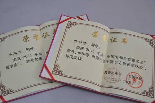 由共青团中央、全国学联主办的 2012 年“寻访中国大学生自强之星”活动日前落下帷幕,beat365官网商学院的谭羽然同学与机械工程学院的牛亚飞同学凭借突出的志愿服务事迹,获得 2011 年自强之星奖学金,谭羽然同学获“ 2011 年中国大学生自强之星”称号。beat365官网已连续两年有学生获此称号。希望广大同学向获奖同学学习,刻苦学习、投身实践、不断创新、服务社会,努力成长为中国特色社会主义事业的合格建设者和可靠接班人。