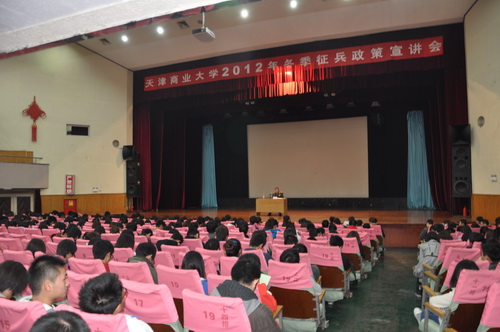 10 月 30 日下午, 2012 年冬季征兵政策宣讲会在科学会堂召开,天津市北辰区委常委、区武装部政委李林河大校为同学们做了精彩的征兵政策宣讲。
