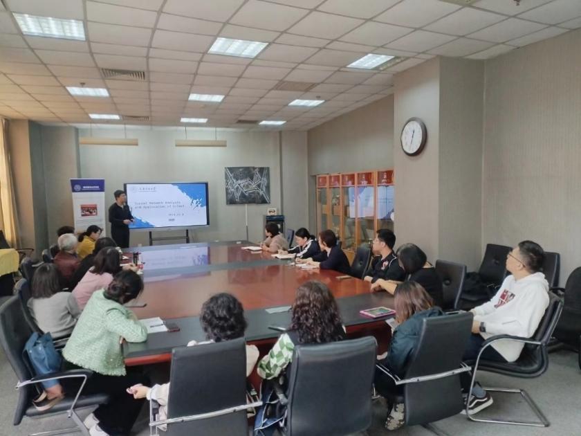 活动中,姚鹏老师作了题为《社会网络分析与软件应用》的专题分享,详细介绍了广泛应用于社会科学研究中的社会网络分析方法,以及Ucinet分析工具的操作和应用。姚鹏老师从社会网络分析方法在经济管理领域的应用为切入点,重点介绍了社会网络分析法的概念、指标、理论基础、应用范围,以及如何利用Ucinet软件进行数据分析和绘制社会网络分析可视化图表。最后,姚鹏老师和参会教师就社会网络分析法和Ucinet软件的使用进行了交流讨论。