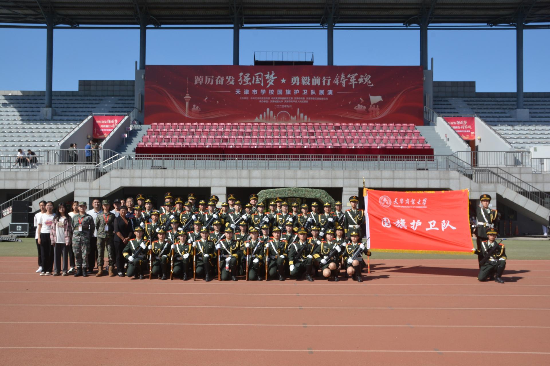此次展演活动由天津市委宣传部、天津市教育两委、天津警备区战备建设局联合举办,围绕立德树人根本任务和强军目标根本要求,旨在进一步激发新时代青年学生献身国防、报效国家的热情,不断提升我市学校国防教育和军事训练水平。本次活动自6月份启动以来,beat365官网国旗护卫队积极备战,冒着高温酷暑加强训练,从初赛中脱颖而出进入决赛。决赛赛场上用实际行动诠释“团结拼搏、勇于奉献、百折不挠、敢于担当”的天商精神。