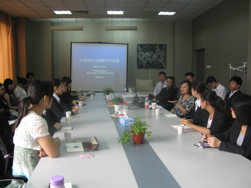 陈洁女士是美国注册饭店高级职业经理人,曾担任过多家高档酒店的市场营销总监,有着丰富的企业管理经验。讲座中,陈洁女士以管理者与研究者兼具的独特视角,结合自己丰富的管理经验,对酒店行业现状进行了透彻地分析。改革开放的三十年来,首旅建国集团一直秉承着走国际化路,创民族品牌,从开放引进,借鉴模仿到推陈出新,首旅建国作为第一家总外合资的饭店对于外国人了解中国起到了重要的作用。