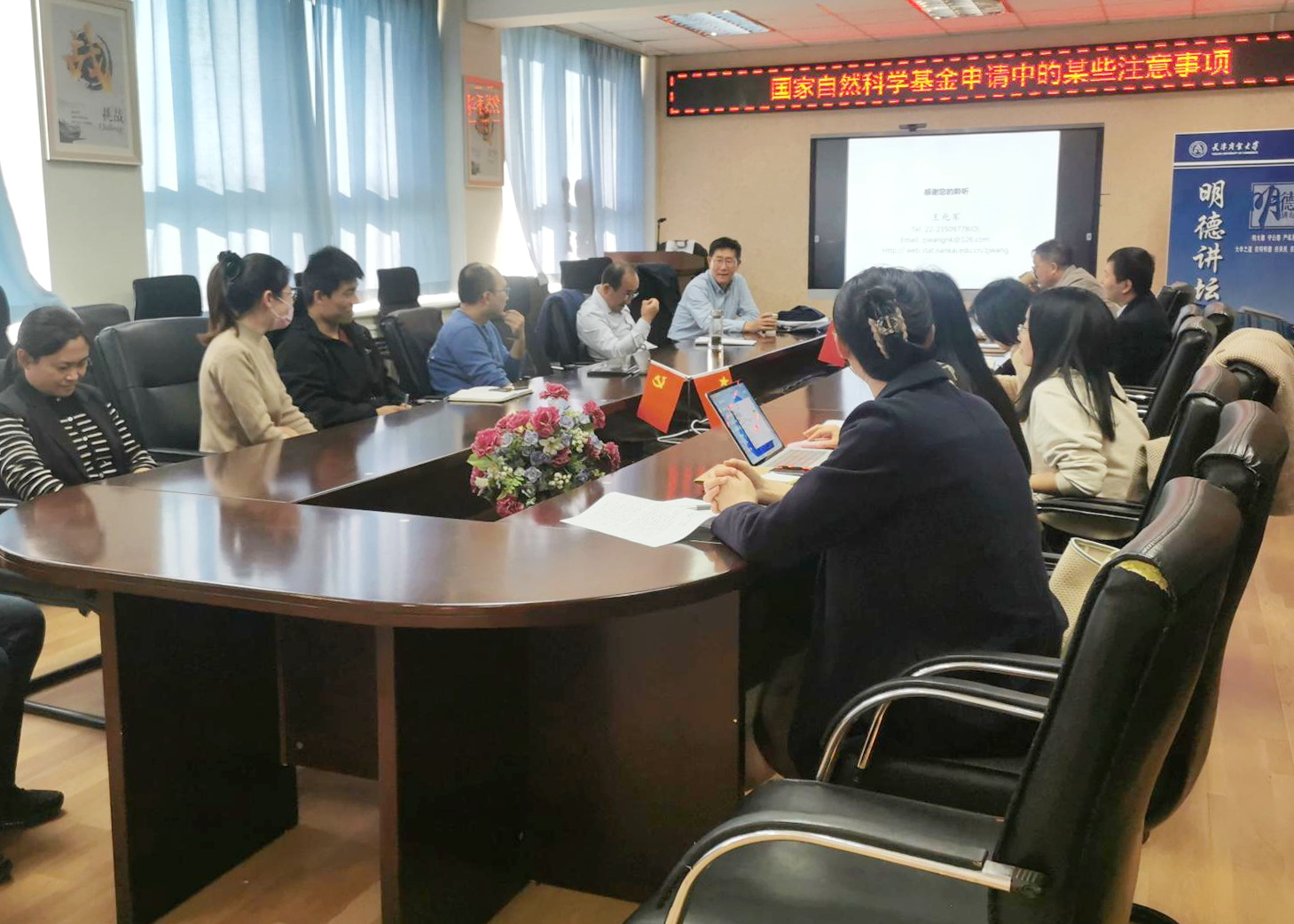 王兆军教授肯定了理学院近年来学科建设和科研申报中取得的丰硕成果。在报告中,他从国家自然科学基金委下设的各个学部评审方向出发,结合多年评审经验,深入浅出地介绍了申报书中各模块撰写的注意事项。针对学院教师科研能力提升,他提出三点建议:一是,转变思路,积极作为。基金申报要突破数学、物理学部的局限,研究信息学部、管理学部、交叉学部等评审方向设置,扩展学术研究视野。二是,深耕细作,稳扎稳打。教师要注重科研论文和项目积累。三是,注重学术交流,从封闭走向开放。青年教师要积极参加国内外学术会议,汲取最新前沿研究,向领域专家学习,开拓研究视野。报告结束后,王教授与在座教师针对国家自然科学基金申报选题、学科交叉、天元基金申报等大家关心的问题进行热烈讨论,取得了良好的效果。