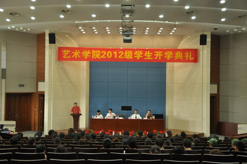 9 月 5 日 下午,艺术学院 2012 级学生开学典礼在图书馆三楼报告厅举行。艺术学院院长王其华、党总支书记郑志明及全院教师、 2012 级新生参加了开学典礼。典礼由党总支副书记梁强主持。