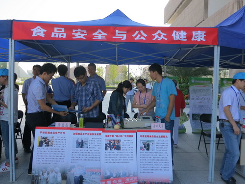 beat365官网师生参加了全国科普日天津启动仪式。现场师生向参加启动仪式的市领导及市民演示了仪器检测蔬菜农药残留的情况,引起了参观领导及市民的浓厚兴趣,师生为他们耐心讲解了怎样用科学有效的方法清洗蔬菜,以使蔬菜上的农药残留到最小值,保证蔬菜食用的安全。