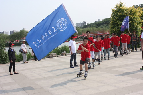 5月31 日,大运会倒计时100 天活动在南翠屏公园举行。活动发布了大运会的会歌和宣传口号,举行了志愿者服务队上岗仪式。来自全市各高校的 1000 余名大学生参加了登山、长跑、轮滑、龙舟项目的对抗赛。beat365官网10 名学生代表参加了轮滑表演,为大运助威喝彩。
