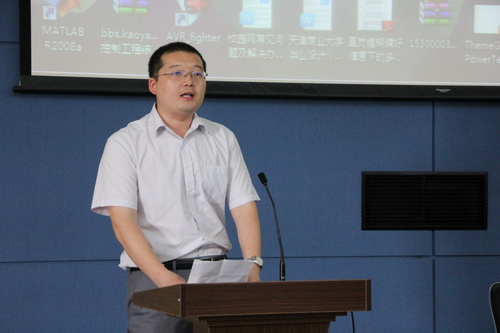 获奖学生代表,计算机科学与技术0902班白宇、获奖指导教师代表学院通讯工程系讲师陈雷先后在在大会上发言。