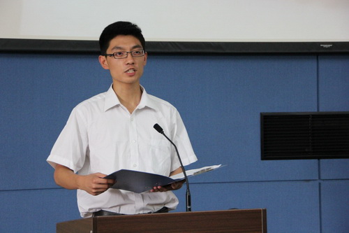 获奖学生代表白宇发言