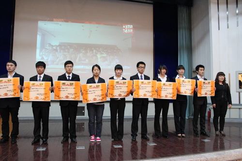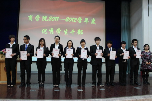 会上,翟云锋副书记上台致辞并对我院 2011-2012 年度共青团工作作了总结,他强调,共青团全体团员要坚持学习“五四”精神,学习先进、追赶先进,开拓创新。商学院团委副书记陈肖宣读表彰决定,共颁发商学院 2011-2012 学年度十佳优秀团支部、十佳优秀团干部、十佳优秀团员、学风建设优良班、学习标兵等共计十四个奖项。十佳优秀团支部代表、学习标兵代表、先进工作者代表、优秀社团负责人代表依次上台发言。