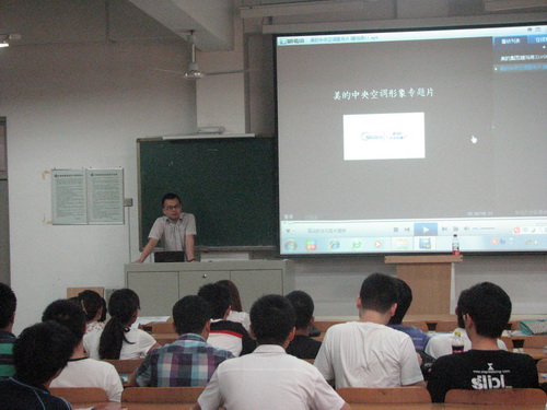 5月9日,机械工程学院在3-218 举办了第十届MDV 中央空调设计应用大赛走进校园活动。美的中央空调的江叶君先生作为主讲人出席了此次活动,制冷与空调工程系 2009 级和 2008 级同学参加了宣讲会。