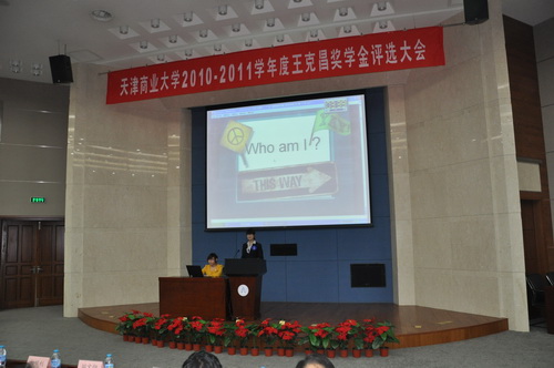 由于丁冉同学卓越的个人素质,优异的学习成绩,丰富的社会实践经历,平和的心态,配合当晚出色的讲演和冷静的发挥,她从来自 13 个学院的 21 名候选人中脱颖而出,以总分第一的好成绩获得唯一一个代表学校参加天津市“王克昌奖学金特等奖”竞选的资格。