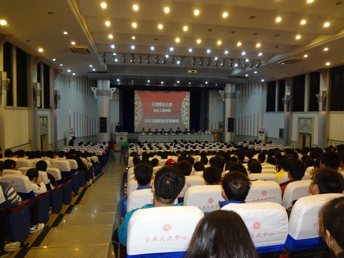 近日,信息工程学院在学术交流中心隆重举行2011级新生开学典礼。院党委书记刘振航教授、正处级调研员马富忠老师、副院长潘旭华教授、党委副书记王艳军老师及学院各系主任、教学秘书、办公室主任、辅导员老师出席开学典礼。471 名新生庄严宣誓,决心做有理想、有目标、勇于担当社会责任的优秀青年。