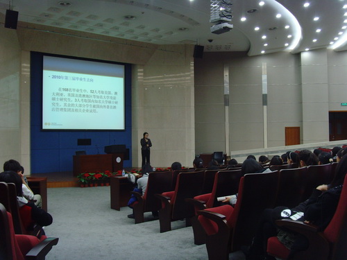 10 月 2 6 日,TUC-FIU 合作学院在图书馆国际报告厅举行了 2011 级酒店管理新生专业教育讲座。合作学院院长王文君博士、学院党总支副书记辛佳澎老师及其他相关老师参加此次讲座,从不同角度为 11 级新生解读专业,为新同学树立专业信心。