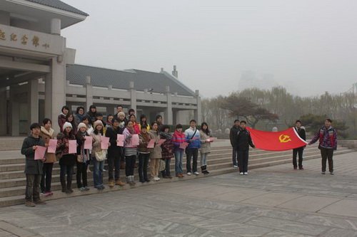 参观完周邓纪念馆后,全体学生在 2009 级党员王塞同学的带领下,进行了老党员重温誓词,新党员表决心的誓词宣读仪式。此次活动在宣读誓词声中圆满结束。