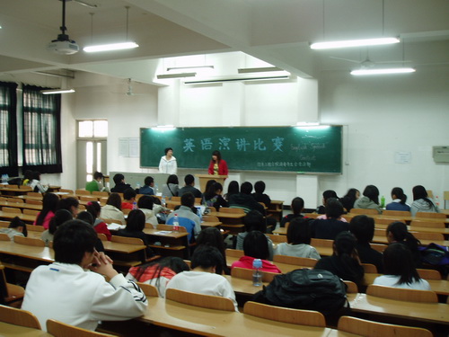 为提高我院学生英语学习热情和水平,4月6日,由信息工程学院院团委学生会学习部主办的“英语演讲比赛”初赛在三号教学楼 118 教室开幕。本次比赛共有来自本院 2010 级各班级的 40 余名选手参赛。由本院团委学生会主席团成员以及部分部门部长担任评委。